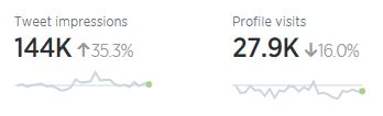 In addition, the number of profile visits went down, even though the number of engagements is way up (for the last 28 days):