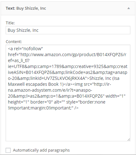 Just to make sure we’re on the same page, this is what my Text Widget looks like: