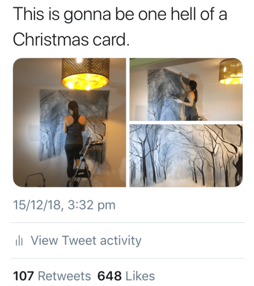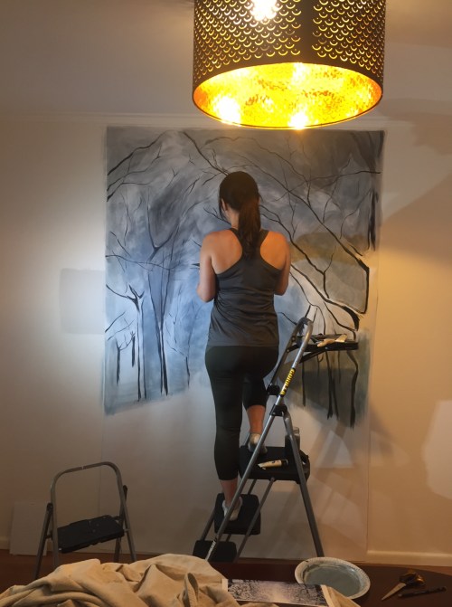 The perfectionist in me will still continue, until it looks more like what I had in my head, but at least I’m not scared or bothered by it, and I keep experimenting and making mistakes. My husband is worried, but every time he asks what I’m doing and where this is going, or makes a smartass comment about the house value, I laugh uproariously and slap more paint on. Because IDGAF about the walls.