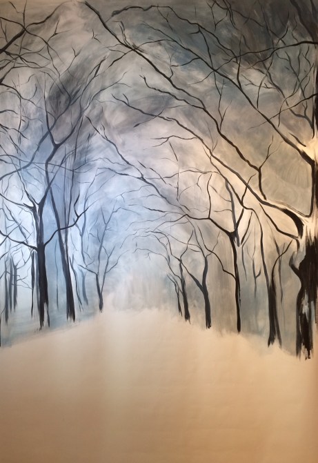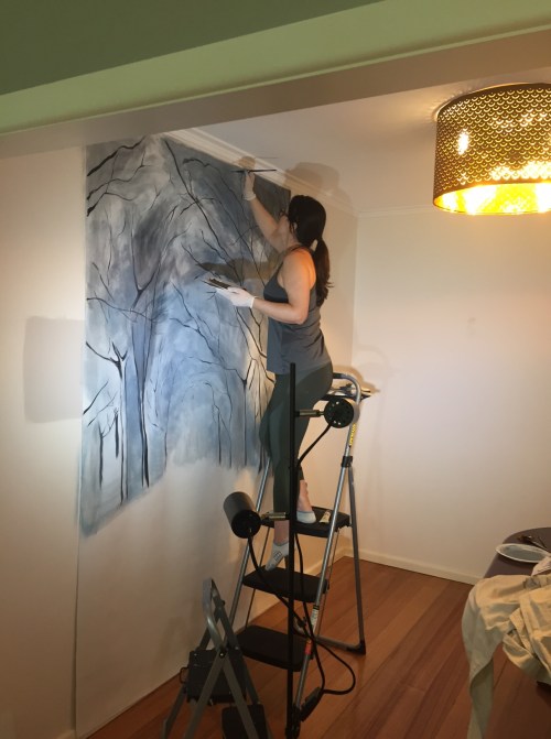 Interestingly, the next bit applied to my artwork. I have shared my portraits previously, all overworked, with great attention to detail, the desire to achieve perfection showing yet never satisfied. Instead, I decided to try my own brand of “perfectionist therapy” and just went at my dining room walls with this: